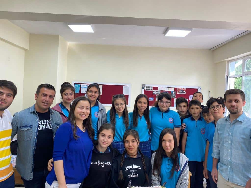 Okul yönetimi ve öğretmenleri olarak zorlu bir süreci geride bırakan öğrencilerimizin 5 Haziran 2022 Pazar günü girecekleri sınavdan önce streslerini azaltabilmek ve kaygı düzeylerini normal seviyeye indirebilmek amacıyla öğrencilerimize bir sürpriz yapmak istedik. Öğretmen ve öğrencilerimizle kestiğimiz pastanın ardından öğrencilerimize başarılar dileyerek kendileriyle hatıra fotoğrafı çektirdik. Okul çıkışı İstiklal Marşı töreninde de alt sınıflarımız alkışlarıyla sınava girecek öğrencilerimize başarılar dilediler.
