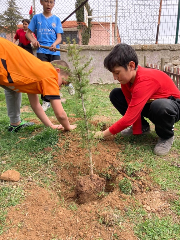 "İlk Dersimiz Yeşil Vatanımız" etkinlikleri doğrultusunda okulumuz bahçesine fidan dikip can suyunu verdik. Okulumuz artık daha yeşil!